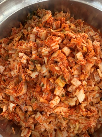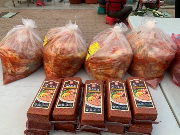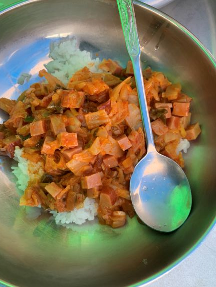 오늘의 메뉴는 스모크햄 김치볶음밥입니다.