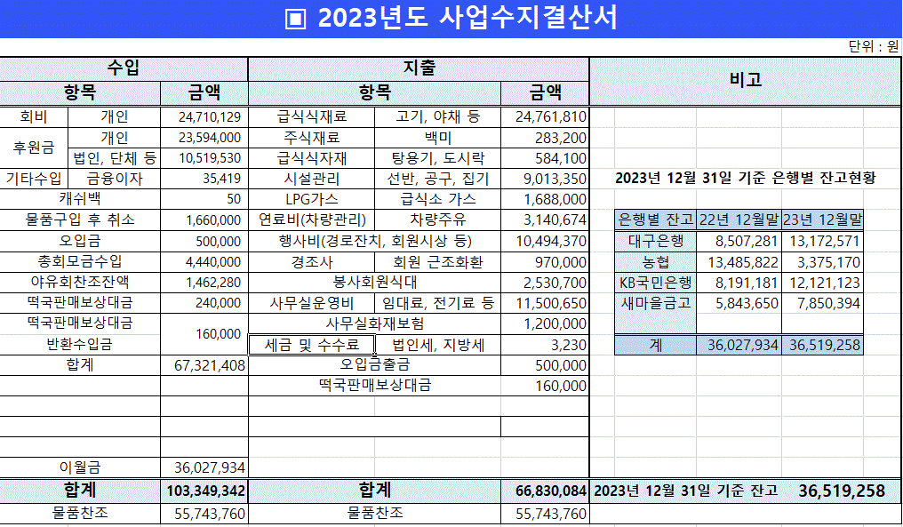 기관소개 설립이념 걸어온길 인사말 사람들 오시는길 사업소개 급식후원과 고충상담 정기공연과 나눔장터 경로잔치와 음악회 회원교육과 교류 참여하기 봉사하기 후원하기 봉사혜택 커뮤니티 공지사항 포토갤러리 사업계획서 예산 결산 및 감사보고서 후원의손길 연락하기 부패신고 기관소개 설립이념 걸어온길 인사말 사람들 오시는길 사업소개 급식후원과 고충상담 정기공연과 나눔장터 경로잔치와 음악회 회원교육과 교류 참여하기 봉사하기 후원하기 봉사혜택 커뮤니티 공지사항 포토갤러리 사업계획서 예산 결산 및 감사보고서 후원의손길 연락하기 부패신고 행복한 동행의 사업입니다. 행복한 동행의 사업입니다. 예산 결산 및 감사보고서 결산 및 감사보고서 2023년 사업수지결산서 2026-03-03 목록